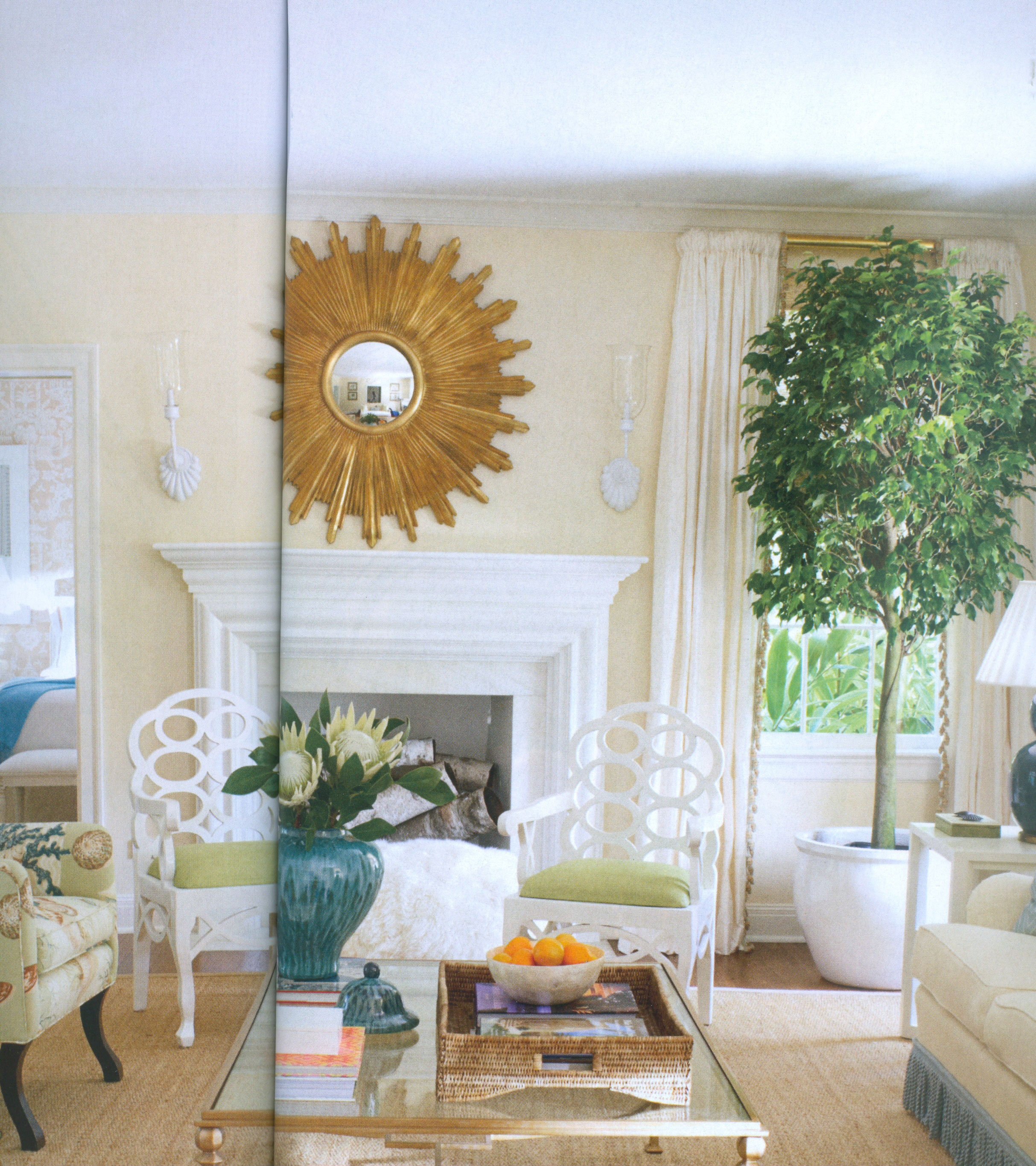 Meg Braff Interiors uses the Carvers Guild Sunburst for the Palm Beach living room.