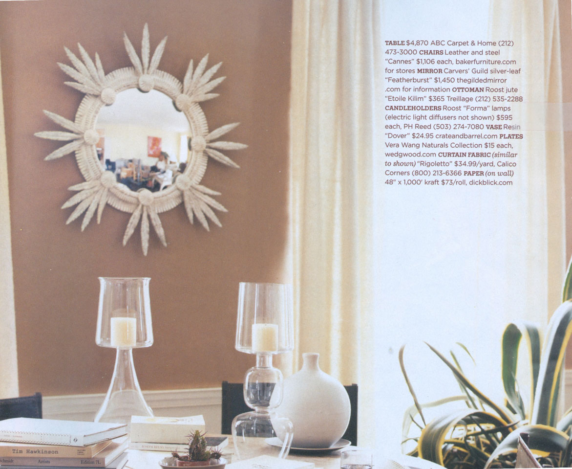 Designer Anne Page of Richmond, VA used the Carvers' Guild Rivoli mirror in a formal dining room which was pictured in the February 2011 Traditional Home magazine.