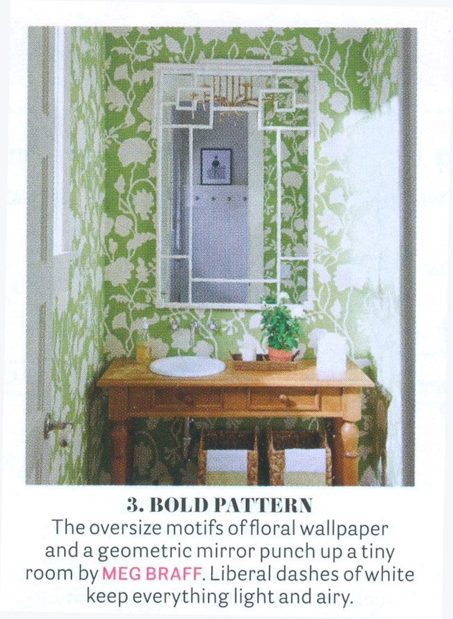 Meg Braff Interiors uses the Chinese Bamboo in an all white finish in the House Beautiful Bath of the Month section.