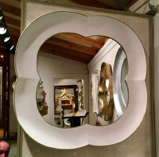 The Quatrefoil is large, deep and dramatic in scale. The Quatrefoil can be hung two ways, as shown 50 x 50" or as a square 45 x 45". The hangers are already installed for hanging either way. The finish is White with Gold edging. Other finishes are available by request.