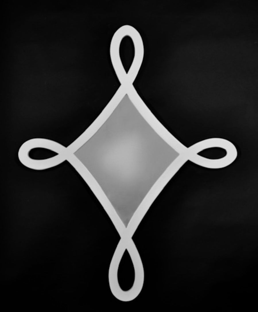 We wish you happiness when you see our Happiness mirror. Inspired by the Celtic symbol of happiness, this new mirror flows eternally as a dancer in sweeping turns. Carol Canner likes her new mirror in a vibrant red to go with colorful fabrics or in black or in white for more sophisticated interiors.