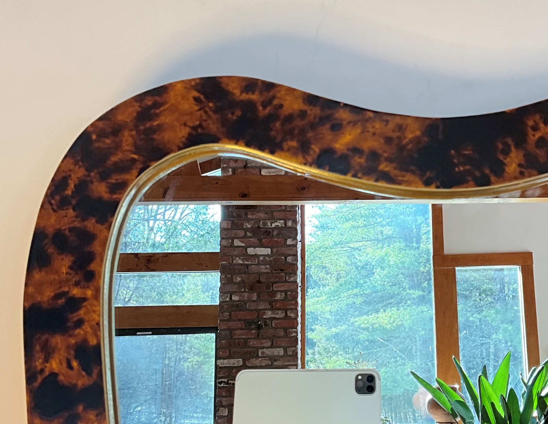 #1974 Alegro 20.5 x 30.5" The perfect mirror frame for highly decorative finishes such as Faux Malachite and Tortoise Shell completed by an exquisite gold inner edging. Shown in the Tortoise Shell on orange finish with Gold Edge.