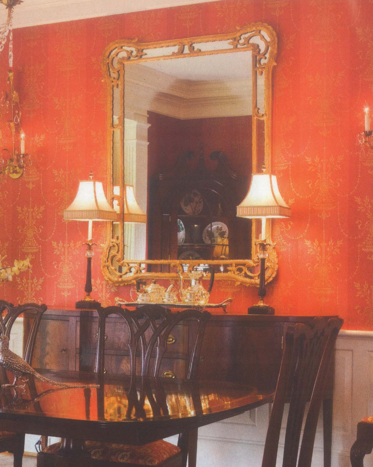 The Rivoli, with lovely open work, lyrical volute motifs, luxurious rounded corners, and a double fretted frame makes an elegant statement both vertically and horizontally. Notice the alternate view how designer Anne Page from Richmond, VA used the Rivoli in a formal dinning room as shown in Traditional Home Magazine.