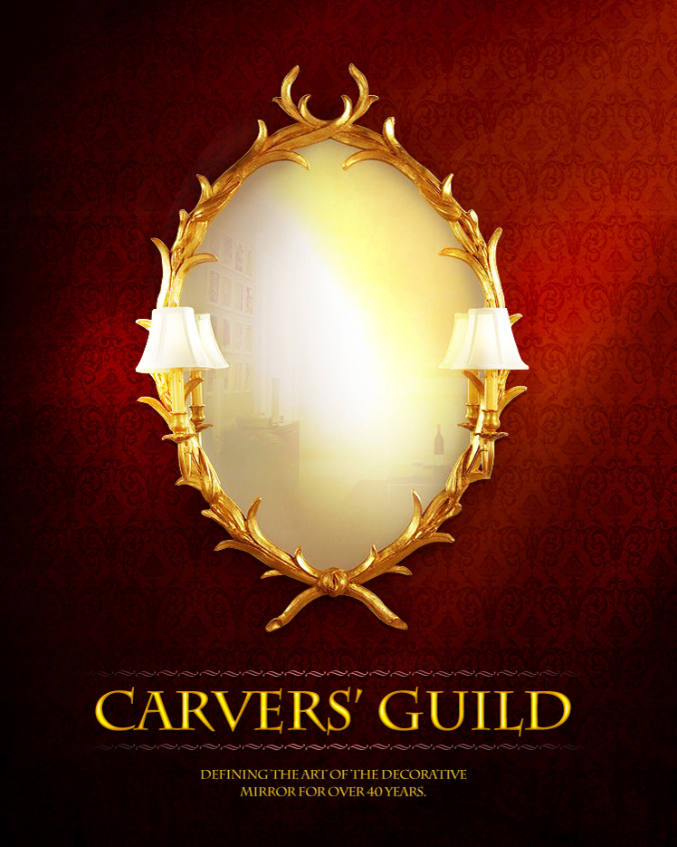 Budding lily stalks cross gracefully in this Arts and Crafts design. Shown in Antique Gold Leaf. Also popular in silver Leaf. This mirror has electrified sconce arms with shades. It may be ordered with sconce arms for candles.