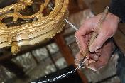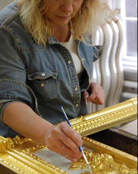 Our casting department uses a hand-poured casting technique with wood, wire work, and resin, producing three dimensional reproductions that are as lively and detailed as the originals. Our finishers have mastered our hand-laid gold leaf finish involving 15 steps and taking over two weeks to complete. Our Versailles finish involves over 9 different painting steps in addition to gold leafing. Even our shipping department custom cuts each box for each piece, ensuring the least breakage possible in shipping.